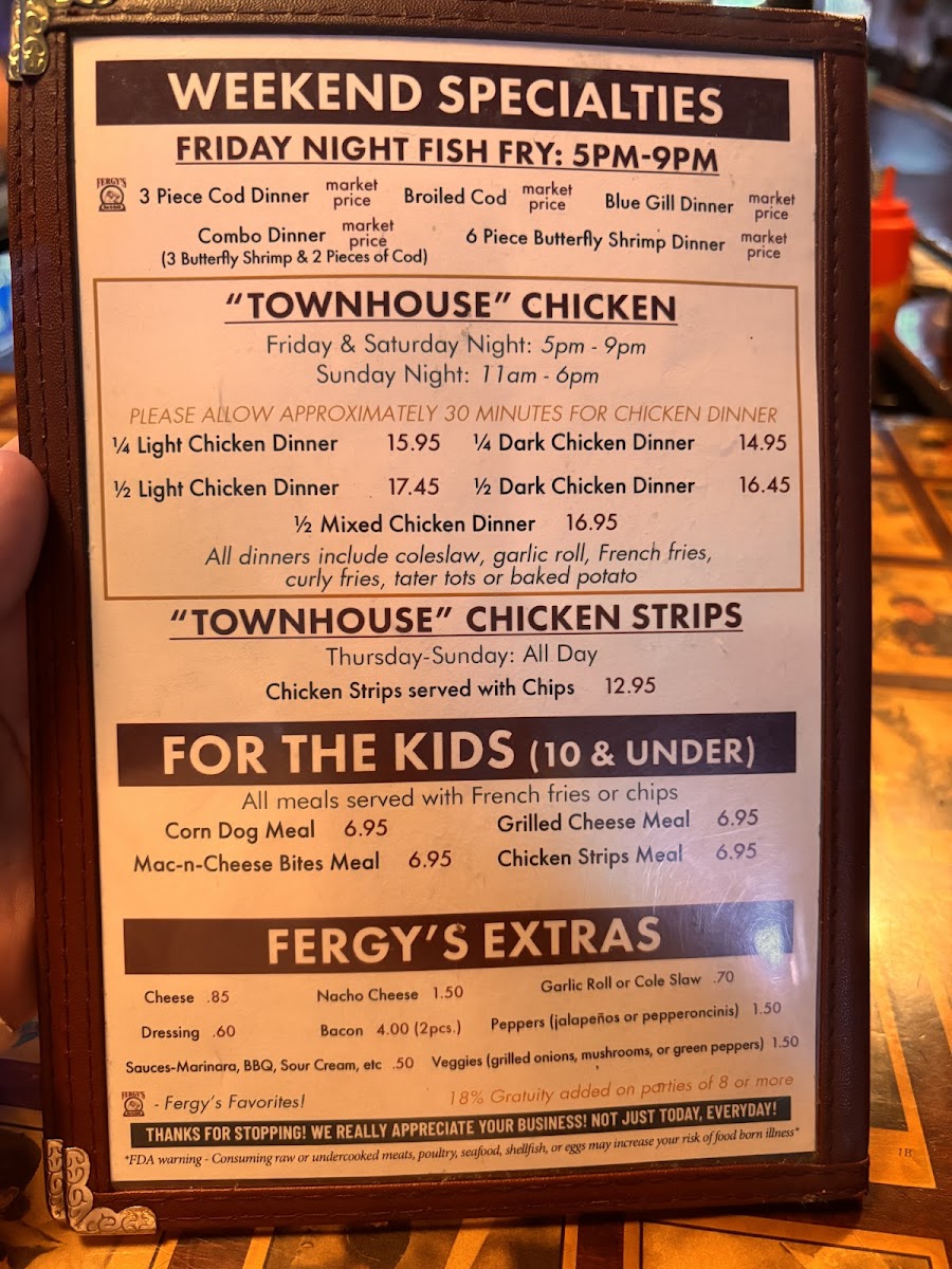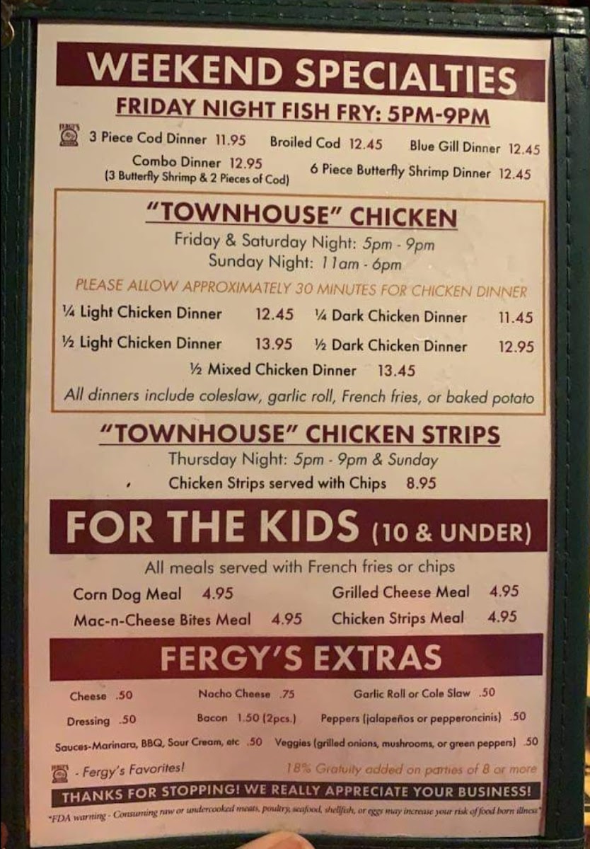 Fergy's Bar & Grill Menu